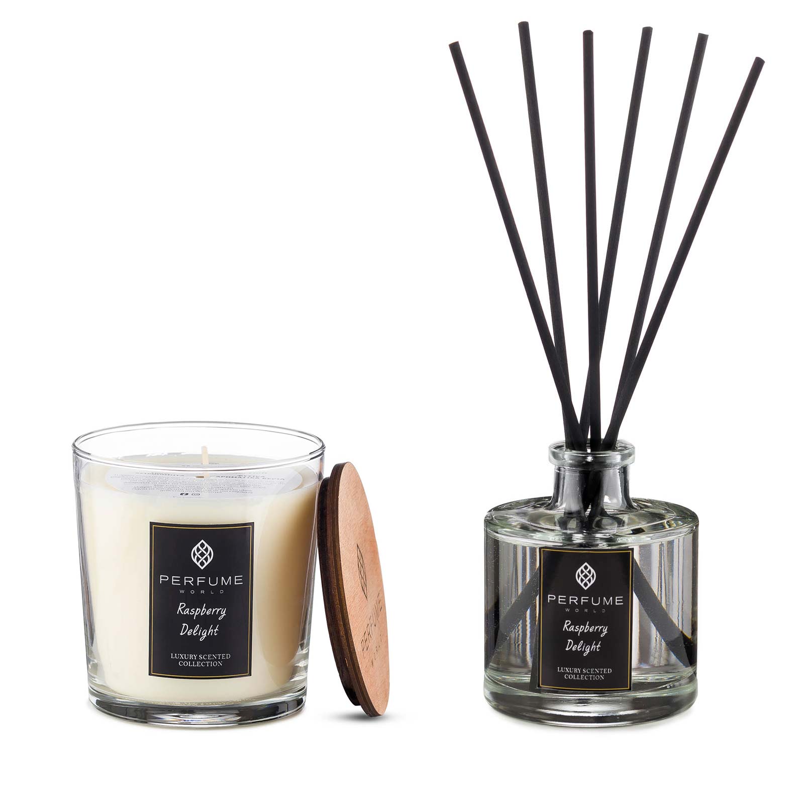 The set includes a 340g scented candle and a 200ml reed diffuser, along with 6 fibre bamboo sticks.